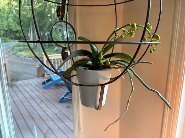 - This orchid, which came from a grocery store and just keeps blooming. Their air roots are so glorious right now! Both the roots and the many buds here are growing visibly every day. I think we're still weeks from blossom. The anticipation of that tickles my heart.
