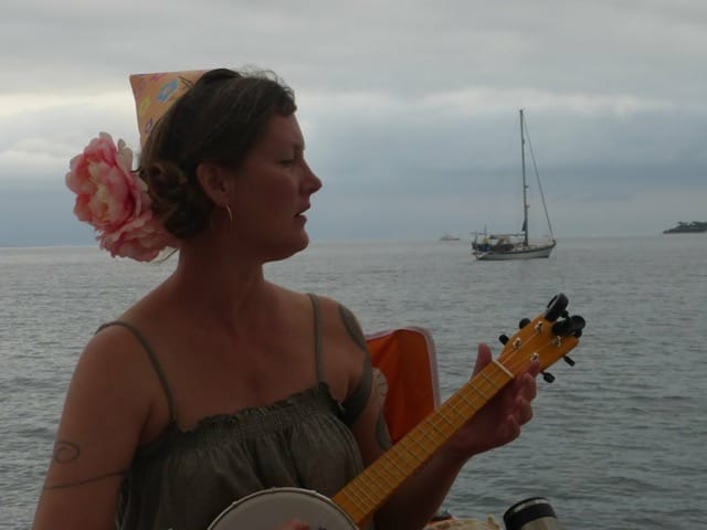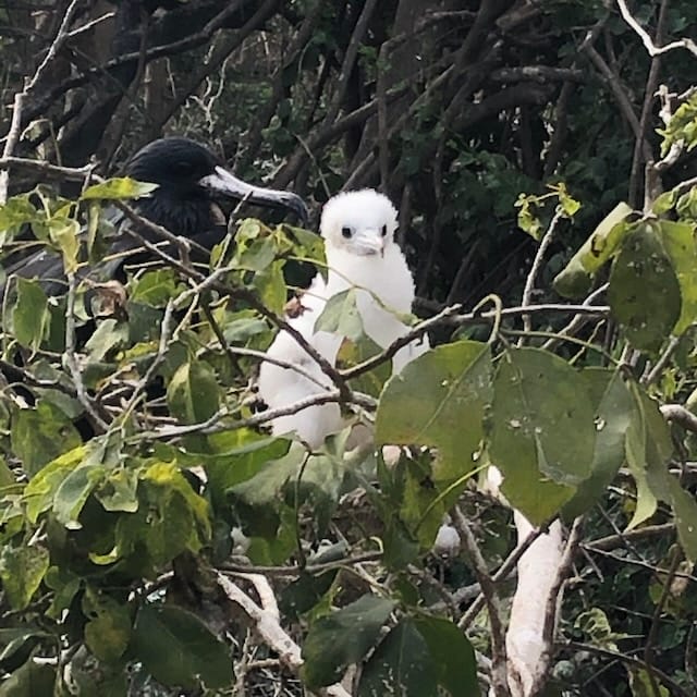 Our favorite adventure with Alene and Bruce was sailing to Isla Isabel, a small island in the Gulf of California, which has no permanent human habitation and is a breeding ground for Magnificent Frigatebirds and Bluefooted Boobies. Me singing Three Little Birds for Alene's birthday, since this is three birds, and to show the kind of silly fun that's afoot with these folks. SV Rejoice, our home at the time, is beyond me as I sing on the deck of SV Migration.