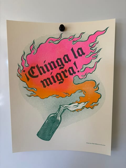 This poster by local-to-me artist Shannon Kidd sits at the top of this newsletter; it's been on the bulletin board in the Little Temple at my home beside instructions for reaching our local ICE rapid response team since summertime. It's also on the fridge in the kitchen. It's there to remind me, to remind us, all the time. Right now, we don't need reminding. It's right here. Sharon has these and other resistance posters and she'll just send you some, and you Venmo her if you can.