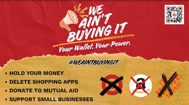 I hope you'll consider joining me and many in We Ain't Buying It from Nov 27 to Dec 1. "This action is taking direct aim at Target, for caving to this administration’s biased attacks on DEI; Home Depot, for allowing and colluding with ICE to kidnap our neighbors on their properties; and Amazon, for funding this administration to secure their own corporate tax cuts." The goal is to have the sales of these corporations take a big dip on that weekend: simply pause your engagement with these companies – and ideally all major corporations – for this holiday weekend. Spread the word! This is an easy one to join, and as we saw with Disney and Jimmy Kimmel, corporations respond to the loss of profit. How we spend is a power we can use for good.
